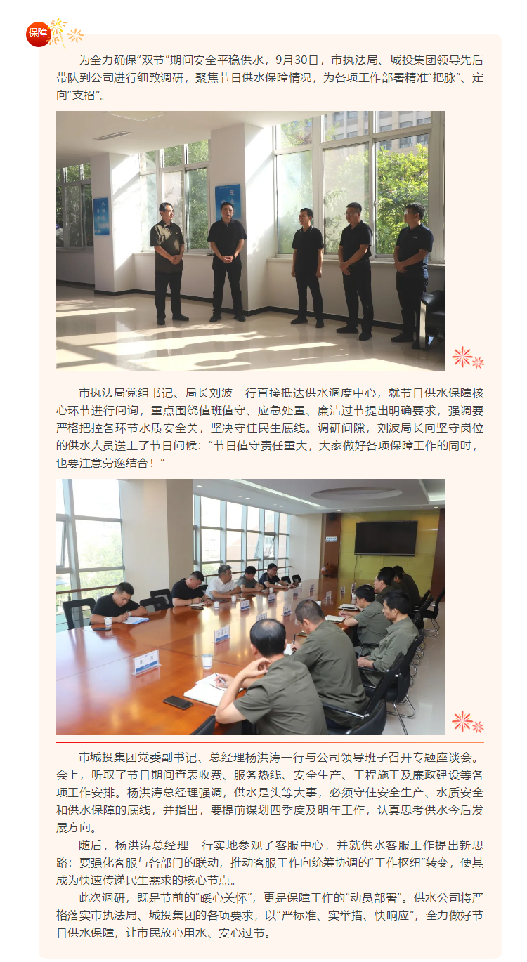 節(jié)前關懷+部署雙到位!市執(zhí)法局、城投集團領導調研節(jié)日期間供水保障工作